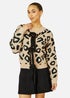Yumi Beige Animal Print Intarsia Tie Front Cardigan
