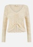 Such a cute addition to your spring wardrobe, super versatile too! The crochet knit Is bang on trend, with long sleeves finished with a scalloped edge that mirrors the hemline. The front of the this scoop neck top is completed by a ruched tie that means you can wear this longer or shorter depending on the outfit. We love it styled over dresses or with a Cami and jeans.