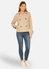 Yumi Beige Cropped Trench Jacket With Pockets & Check Lining