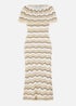 Yumi Beige Stripe Crochet Knit Bardot Midi Dress