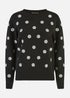 Yumi Black All Over Embroidered Daisy Knitted Jumper