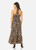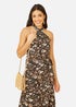 Looking for a sophisticated version of floral, this Yumi dress is perfect for wedding invites or beach holidays. The cross over halter style neckline is flattering, with a maxi length finished with a tiered hemline. Wear with sandals and gold accessories.