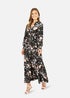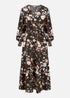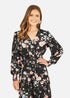 Yumi Black Blossom Floral Print Ruched Long Sleeves Midi Dress