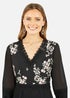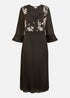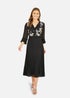 Yumi Black Embroidered Panel Midi Dress With Pleats