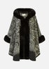 Yumi Black Faux Fur Trim Cape With Paisley Print