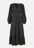 Yumi Black Foil Print Long Sleeve Midi Dress