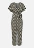 A great jumpsuit can be the key to summer dressing - Occasions and casual covered in this geometric print all in one. Made from a silky lightweight fabric, with angel sleeves, self tie waistline and wide leg flowing legs this one is so flattering and easy to wear. With pockets as a cute extra feature, we love this style with strappy sandals and statement earrings.