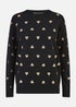 Yumi Black Gold Foil Heart Print Relaxed Fit Jumper