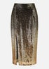 Yumi Black/Gold Sequin Split Fitted Midi Skirt