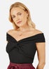 Yumi Black Jersey Cotton Bardot Top With Knot Detail