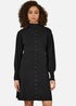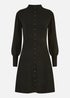 Start the new season with style in this midi dress from Yumi. In classic black, with a button up fastening from collar to hem. With balloon sleeves that cuff at the wrist at add to the smart and chic silhouette. The ribbed knit is soft and looks perfect with tights and boots for cooler days.
