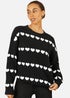 Yumi Black Knitted Jumped With Heart Stripes