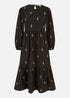 Yumi Black Long Sleeve Midi Dress With Floral Embroidery