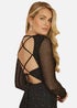 Yumi Black Mesh Bodycon Midi Dress With Tie Back and Diamantes