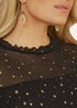 Looking for a party staple this season? This foiled star print top is perfect for those last minute invites! The mesh fabric, high neckline and long sheer sleeves means it's a great fancy staple. Wear with jeans or wide leg trousers, and throw on some heels for good measure.