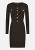 In an all over metallic stretch knit, this little mini dress is the perfect work to weekend option. With military nods in the buttons and pocket details, this fitted dress hugs your body to show off your figure. Style with boots and tights for work, and add heels for the weekend.