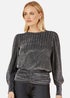The perfect top for any invite this party season. Designed for a comfortable and flattering fit, the long sleeve is paired with ruching on the hemline, all crafted from a shimmering metallic stretch fabric. Pair with a leather skirt or jeans and boots.