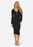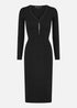Yumi Black Rib Fitted Midi Dress With Diamante Detail Zip Neckline