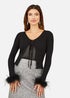 Yumi Black Ribbed Bolero With Feather Cuffs