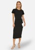 Learn moreThis simple and ultra elegant style is super versatile, made from a light stretch fabric, a gorgeous and flattering fit that hugs the body with ruching at the waist. The angel sleeve balances this dress and gives it a feminine touch. This would be the perfect dress to wear for invites this season - The perfect little black dress.