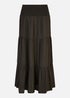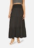 Yumi Black Ruched Waist Tiered Midi Skirt