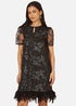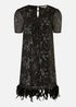 Yumi Black Sequin Embroidered Tunic Dress With Feather Trim Hemline
