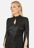 Yumi Black Sequin Fitted Midi Dress With Flute Sleeves