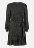 Yumi Black Sequin Long Sleeve Frill Wrap Dress