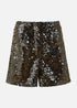 Channel your inner disco diva in these stunning shorts from Yumi. In a sparkly all over black sequin that will twinkle and shine on any night out this party season. The high waist design will pair perfectly with a bodysuit and blazer.