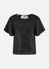 Yumi Black Sequin Top With Sheer Sleeves & Cut Out Back