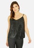 Perfect matched with leather trousers and an oversized blazer, this statement Black vest top features cross-back skinny spaghetti straps and all-over sequinned detailing.