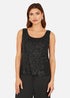 Grab this black Yumi top with all over sequins to be invite ready without the stress! A simple vest shape with round neckline that looks perfect paired with a wide leg trouser, jeans or skirt. Add a blazer and heels and you're ready to go shimmy and shine.