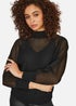 • Yumi Black Sheer Roll Neck Jumper With Knitted Vest Top