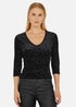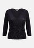 Bang on trend leopard print for the new season. The ultimate day to night top that is super versatile for any outfit, With a slight stretch fabric, and all over velvet print, The fitted shape with 3/4 sleeves and V neckline.
