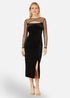 Chic and sexy style for any party invite. This velvet midi dress from Yumi is perfect for party dressing, with a sheer sleeve, slash neckline and all over sumptuous fabric. The midi length boasts a split hemline and the stretch of the fabric will you flatteringly.