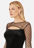 Yumi Black Velvet Midi Dress With Slash Neckline and Sheer Sleeves