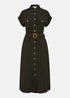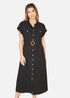 Yumi Black Viscose Linen Look Midi Shirt Dress With Wooden Belt