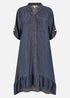 Yumi Blue Chambray Denim Dip Hem Relaxed Fit Shirt Dress
