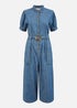 Yumi Blue Cotton Chambray Button Up Jumpsuit