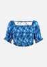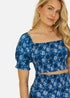 Yumi Blue Cotton Voile Floral Ruched Crop Top
