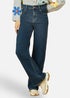 These dark wash jeans are perfect for a denim update this season. In a high waist design, with wide leg fit that look great [paired with all your tops and knitwear. The slight stretch in the fabric adds comfort to the fit.