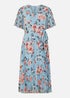 Yumi Blue Floral Pleated Wrap Midi Dress