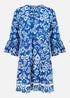 Yumi Blue Ikat Print 3/4 Sleeve Tunic Dress