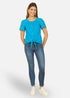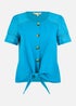 Yumi Blue Jersey Button Detail T Shirt With Broderie Anglaise Sleeves & Tie Front