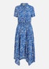 Yumi Blue Leaf Print Dip Hem Midi Shirt Dress