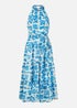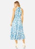 Yumi Blue Leaf Print Halter Neck Midi Dress