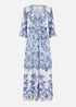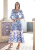 Yumi Blue Paisley Wrap Midi Dress With 3/4 Sleeves