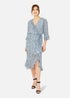 Yumi Blue Recycled Heart Spot Frill Wrap Midi Dress