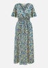 Learn moreWith the prettiest all over blue ditsy floral print, this maxi dress from Yumi is calling out for summer invites. The fluttery sleeves, ruched waist and V neckline give this dress its relaxed fit. Style with heels for a dressier look, or throw on trainers and a denim jacket for everyday attire.