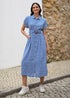 Yumi Blue Viscose Midi Shirt Dress With Matching Belt